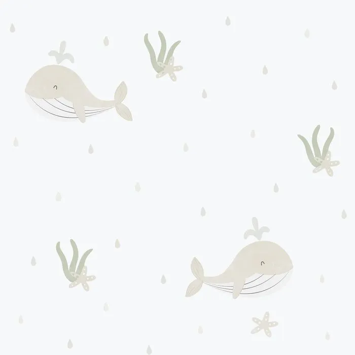 Papel de parede de Baleias com tons de Bege e cinza. Para ambiente infantil ou adolescente.